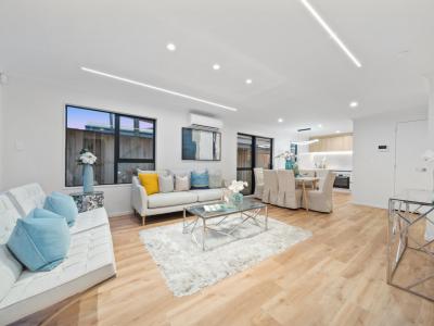 Downstairs is designed for effortless living and sun-filled entertaining, with a vibrant kitchen flowing into a welcoming dining room and a versatile rumpus or family area, ideal for kids or hosting friends separately from the main lounge.