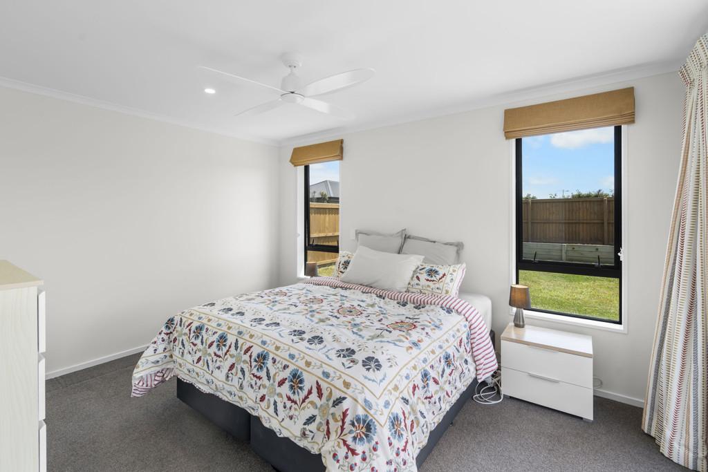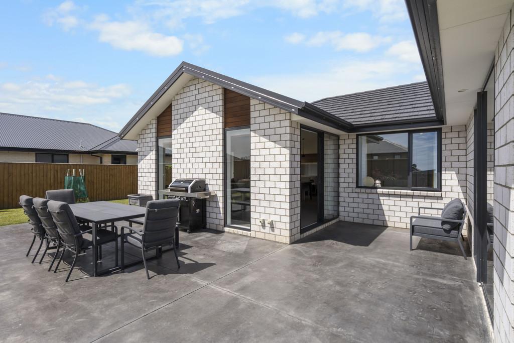 Welcome to 14 Lesser Close, Rolleston - a beautifully crafted three-bedroom, two-bathroom family home built in 2021 by Peter Ray Homes, positioned at the end of a quiet cul-de-sac in Falcons Landing. The property sits within the Clearview School Zone and offers a practical layout designed for modern family living.