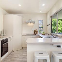 Privately fenced and backing onto the extensive Marlborough Park with a beautiful tree glade nearby, the views from the living rooms and decking are both serene, restful, and a tonic for busy lives. A magical setting - you would think you are a world away, yet so centrally located near Wairau Valley and easy access to Milford and Takapuna.