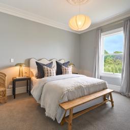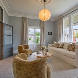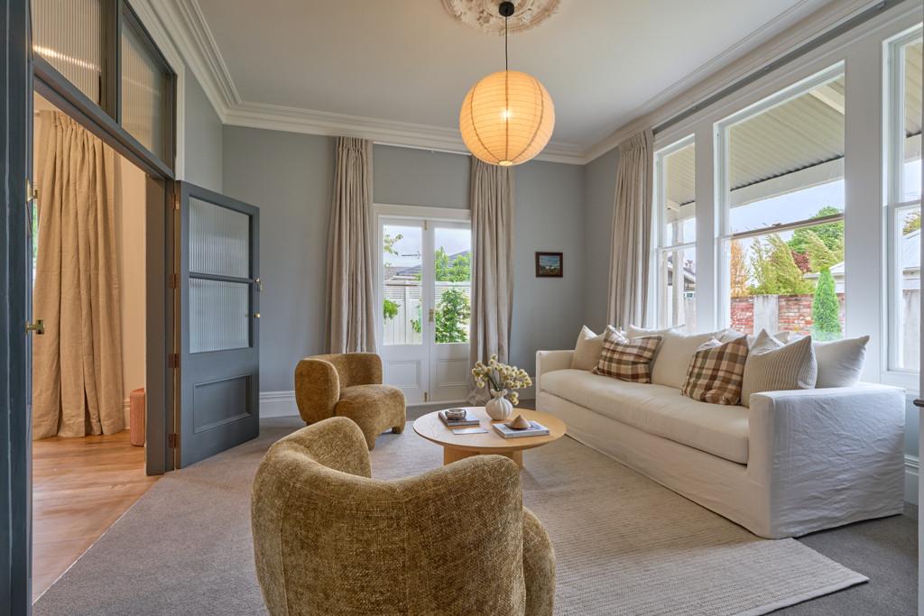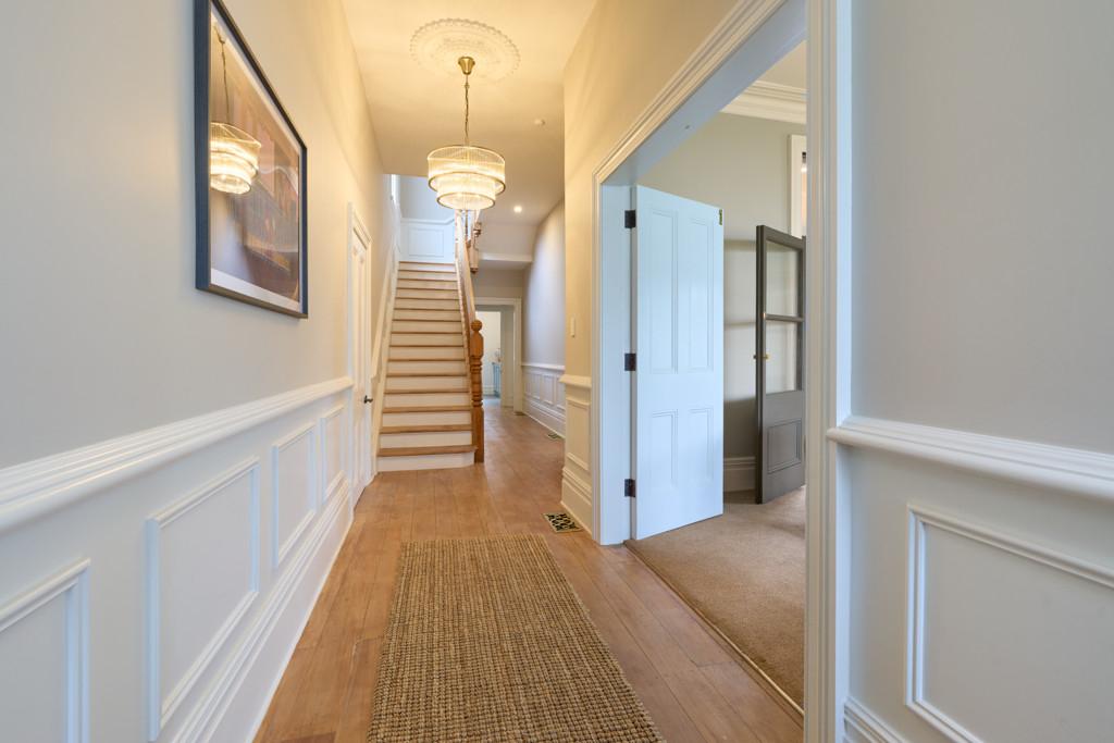 Eaves trimmed with intricate timber fretwork, wainscoted hallways guiding you inward, original ceiling roses that float above the spaces like sculptural heirlooms and a Kauri staircase bannister cared for by the hands of generations. These are the gestures you can't replicate, only preserve, honour and elevate.