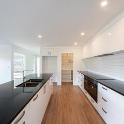 induction hob, and there's a walk-in-pantry with extra storage and bench space.