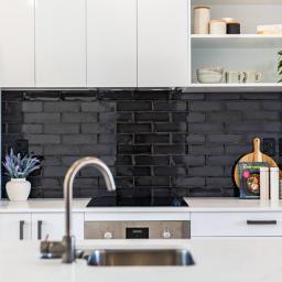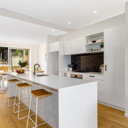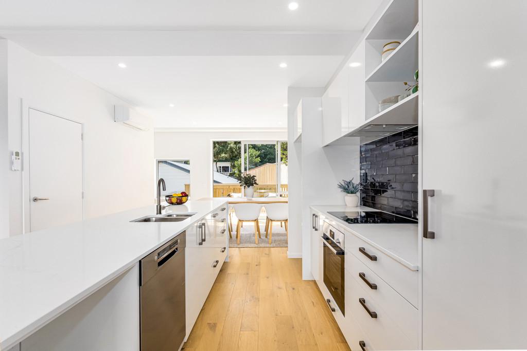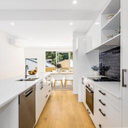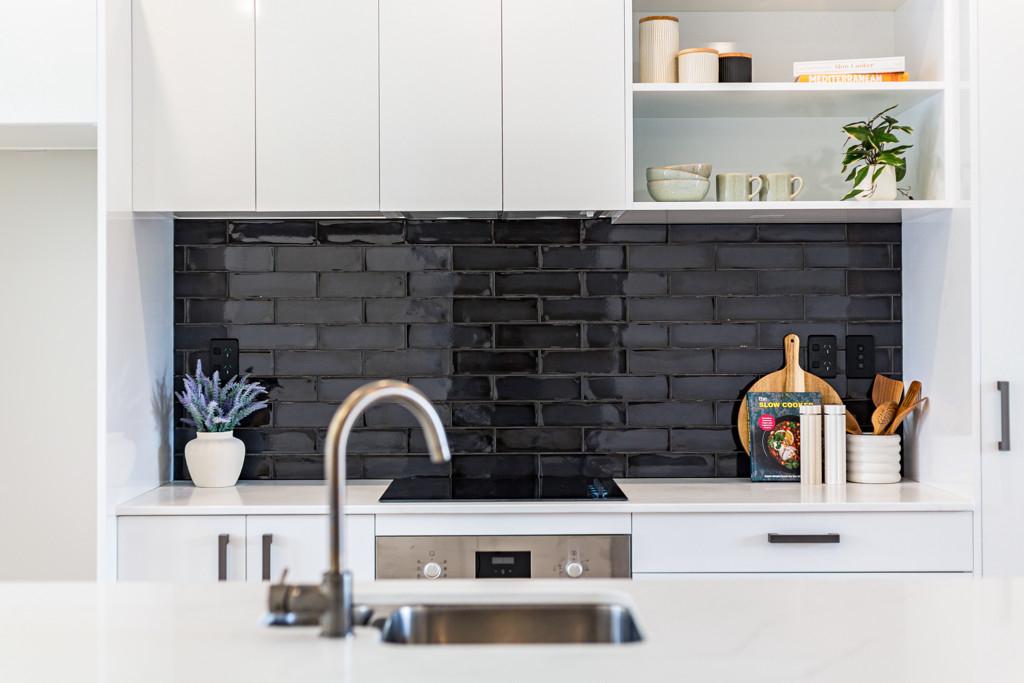 • Sleek, stylish kitchen with plenty of cupboard space and stone bench tops