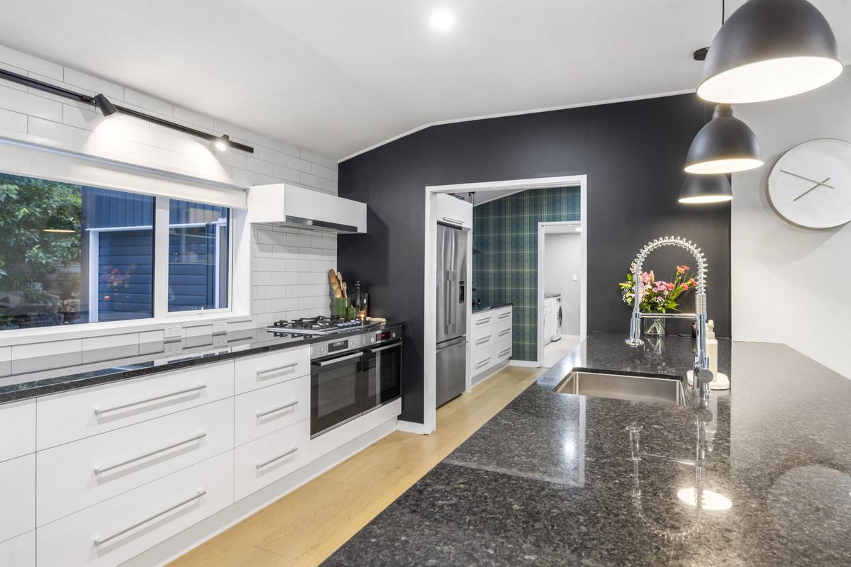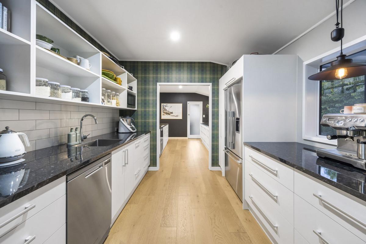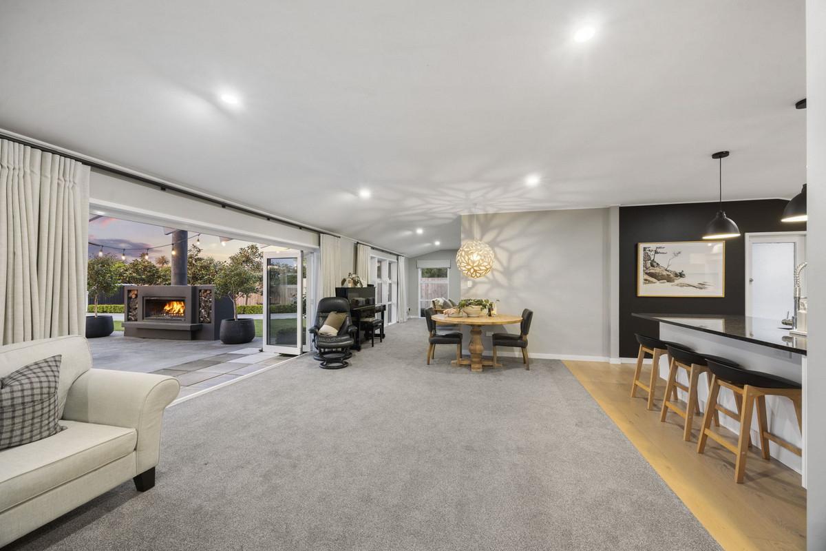 Comfort is assured with a woodburner, heat pump, double glazing, and full insulation. The home also features internal-access garaging plus ample off-street parking, set amongst beautifully landscaped gardens in a quiet, established neighbourhood.