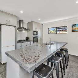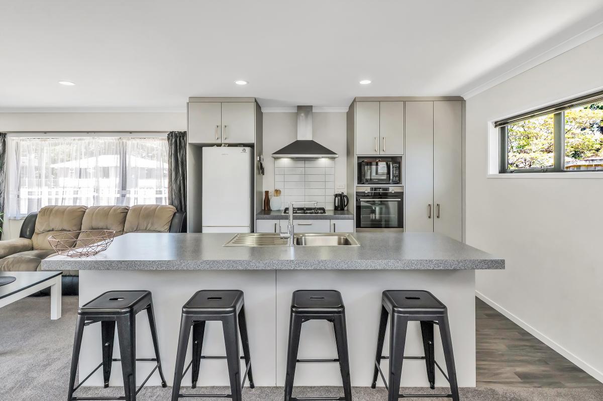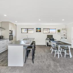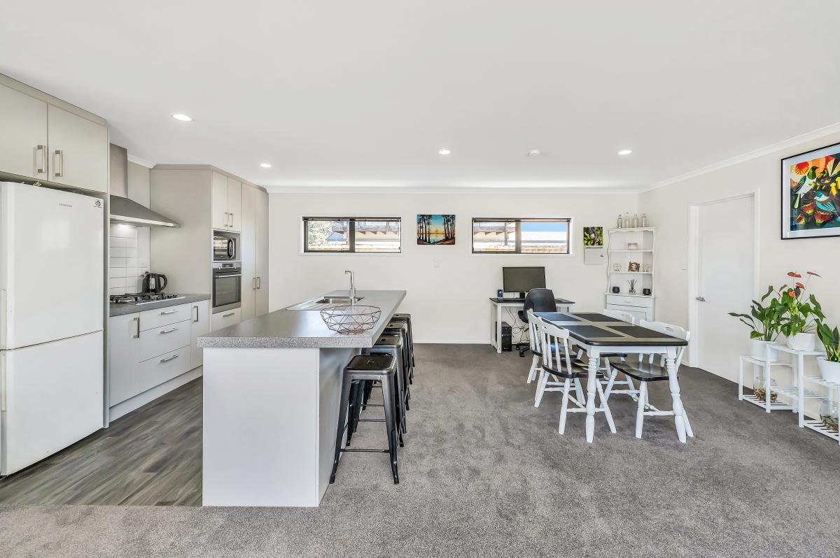 Step into the heart of the home – a spacious, open-plan living area that seamlessly combines the kitchen, dining, and living spaces. The kitchen is a delight, featuring a gas cooktop, new wall oven and dishwasher (within the last 12 months), large island bench, and a sociable breakfast bar. Entertain with ease as slider doors lead to a generous patio with exposed aggregate concrete, ideal for summer BBQs and outdoor gatherings.