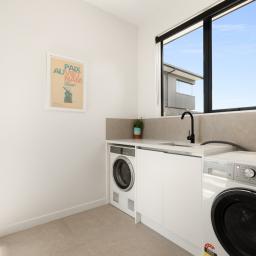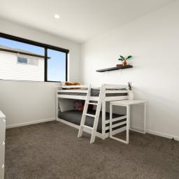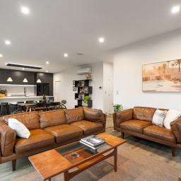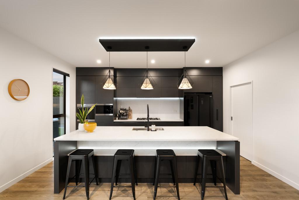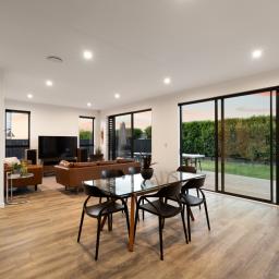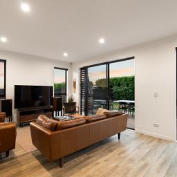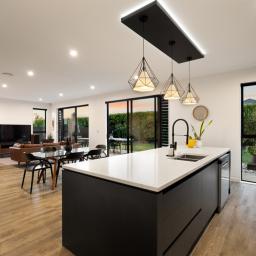 High stud ceilings enhance the sense of space, complemented by the abundance of natural light from the north-facing backyard. At the heart of the home, the contemporary kitchen and adjoining scullery create a space where culinary creativity and entertaining come together. Designed for connection, the generous open-plan living and dining areas lead to a sun-soaked deck and fully fenced outdoors, providing the perfect canvas for family gatherings, relaxed weekend barbecues, and carefree afternoons while the children play. Meanwhile, the second lounge with its feature fireplace offers an inviting retreat for quiet evenings in, watching the sun set over the marina.