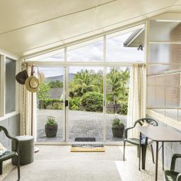 There are three bedrooms , two doubles and a single - all with ample storage. Comfortable with an HRV unit and a heatpump in the lounge area. An accessible shower and toilet area have been redone which would suit alot of needs. The kitchen is original so is ready for you to add your own touch, and is open plan to the dining area, which also opens onto the conservatory.