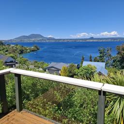 The two double bedrooms feature spectacular views of Lake Taupo and Mount Tauhara - making it tempting to linger a little longer in the mornings! The property is also frequented by resident Tui and boasts a thriving avocado tree, adding to the relaxed and natural charm of this special spot.