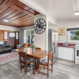 The main residence-a four-bedroom home cherished as a family coastal escape-has been thoughtfully refreshed for comfort and longevity. Recent improvements include full double glazing, comprehensive insulation across walls, floors, and ceilings, brand-new wool carpet with premium underlay, new decking, and various other upgrades. With its solid structure and enhanced warmth, the home provides an inviting foundation for further enhancement or reinvention.