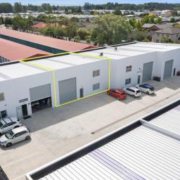 Tidy post-quake warehouse unit of 195m2*. Solid concrete tilt-slab construction, completed recently in 2020 for added peace of mind.