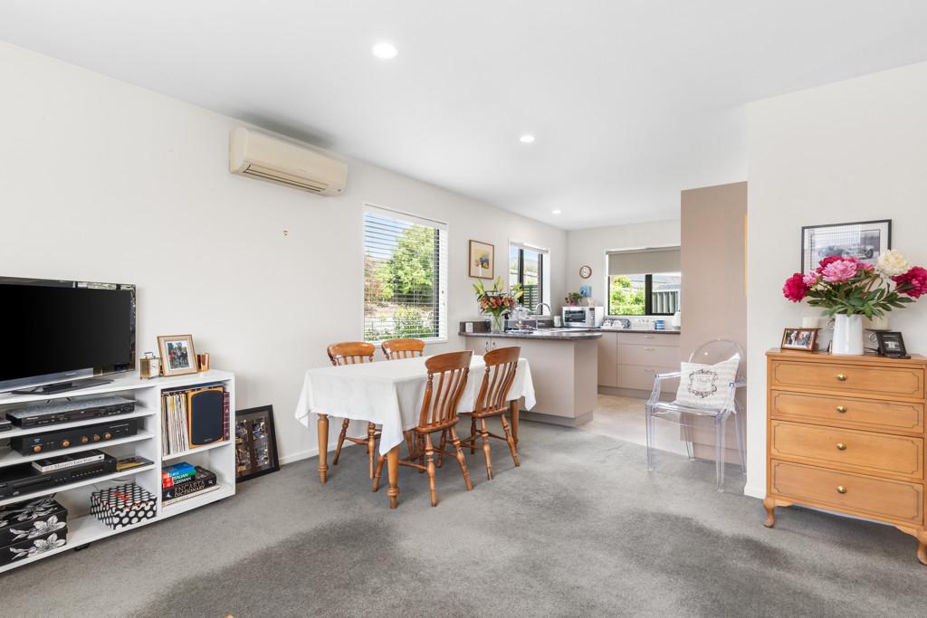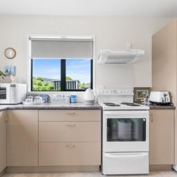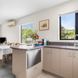 Inside and you'll find an inviting open-plan kitchen, living, and dining area that flows effortlessly and is thoughtfully designed for comfortable everyday living. The space is beautifully bright thanks to generous windows, while double glazing and a heat pump ensure the home remains warm in winter and cool in summer. The kitchen offers great functionality with ample cabinetry, modern appliances, and a practical layout that makes meal preparation a breeze.