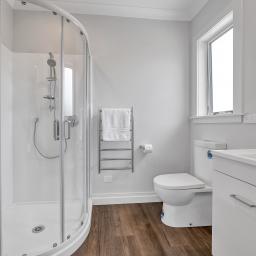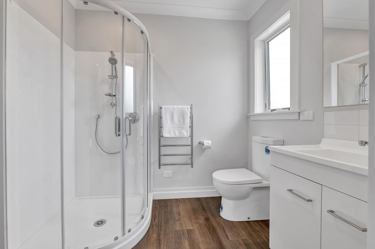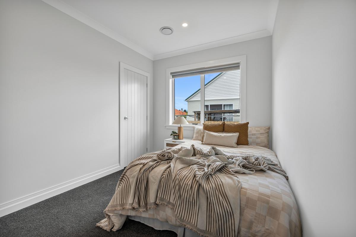 Each of the three bedrooms includes a wardrobe and presents a peaceful setting to wind down. The bathroom follows the home’s soft palette, keeping everything clean and harmonious. Comfort is well covered with full insulation, double glazing, a heat pump in the lounge and infinity water heating.