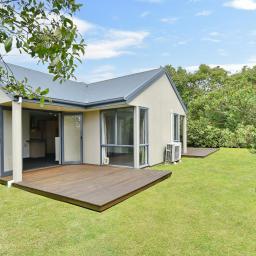This three-bedroom home features built-in wardrobes and sits on a rear site, offering privacy and a peaceful setting. Built in the 1990s and constructed with monolithic cladding with eaves. A build report is available. The dining, and lounge areas are north-west facing, capturing all-day sunshine, while the kitchen captures the morning sunshine. A heatpump keeps the home warm and cozy year-round. Both the lounge and dining open onto private decks overlooking a fully fenced backyard – ideal for entertaining or relaxing outdoors.