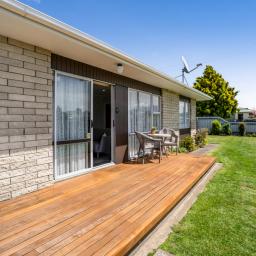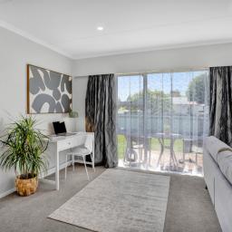 Step inside to modern, neutral interiors and an easy open-plan flow between the kitchen, dining and lounge. The home includes two bedrooms, both with double wardrobes, and offers excellent storage throughout. A heat pump keeps the living spaces cosy year-round, and the layout provides great practicality with a separate bathroom featuring both bath and shower, plus a separate toilet and separate laundry.