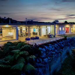 A hallway library adds charm and practicality, with soft lighting guiding you to three double bedrooms, each boasting a private ensuite and restful outlooks. Two feature walk-in wardrobes and all have direct outdoor access. The separate office, accessed externally, offers an easy work-from-home setup while keeping work and home life distinct-though the view may tempt daydreams! When the day ends, wander down to the rock fire pit to toast marshmallows under the stars.