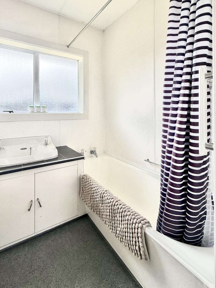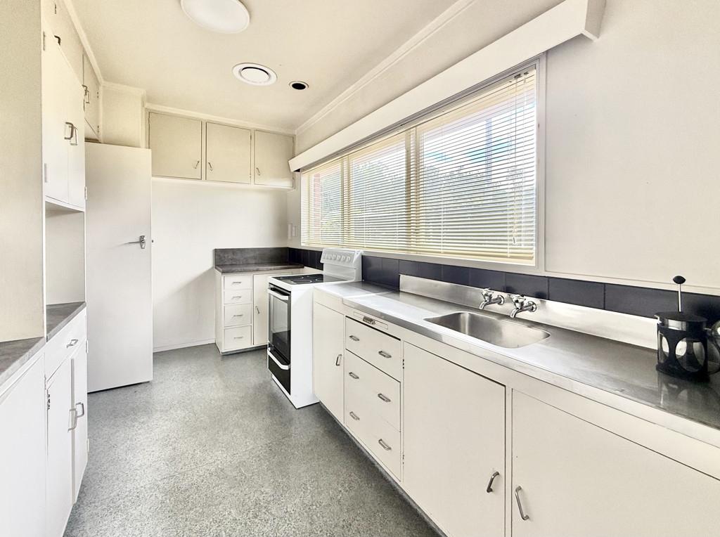 The open-plan living and dining area sits at the front of the home, enjoying views of the exclusive-use front section and seamless indoor-outdoor flow from the dining space. A generous separate kitchen provides ample storage and workspace.