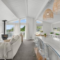 Perched high on Mulberry Street, this home offers panoramic views sweeping from the Eastern hills across the harbour and into Wellington city, a view you won't want to take your eyes off. This residence has undergone extensive renovations, far beyond a simple facelift, blending style, comfort, and modern functionality.