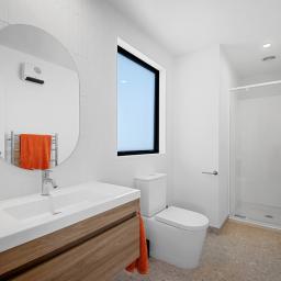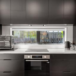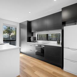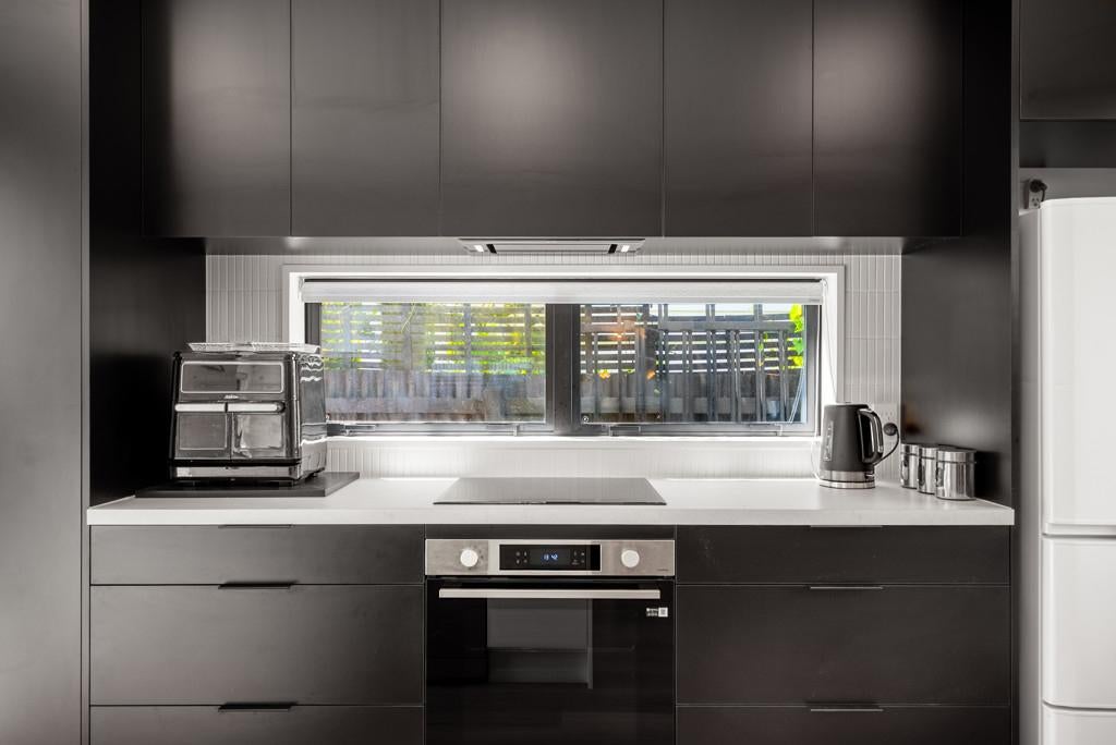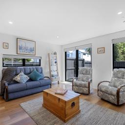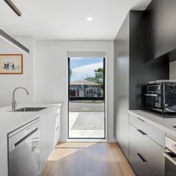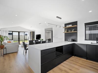 Bathed in natural light, the open-plan kitchen, dining and living area features a striking designer kitchen and flows seamlessly to a sunny outdoor space - perfect for relaxing or entertaining. A clever hideaway laundry nook adds to the home's functional appeal.