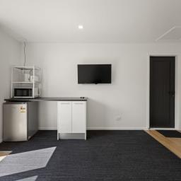 The configuration includes 12 self-contained rooms, each with its own ensuite, kitchenette furnished with kettle, microwave, mini fridge, and wall-mounted TV. Units 2 - 12 are designated for sole occupancy under the council consent, complemented by a two-room manager’s unit. Residents also benefit from a well set up kitchen with spacious food preparation and cooking spaces, and a large communal lounge and dining area, supported by laundry facilities and onsite parking.