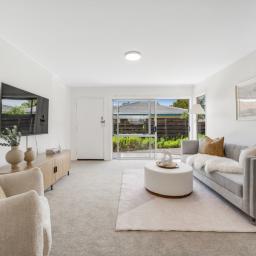 The sun-drenched outdoor living area is designed for minimal maintenance, providing the perfect spot to unwind. A single internal-access garage plus additional off-street parking complete the package.