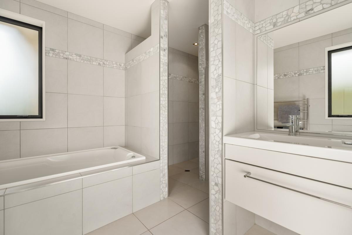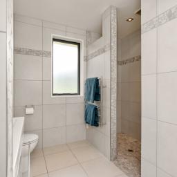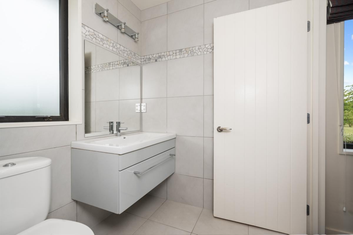 The thoughtful bedroom configuration ensures privacy and comfort for the whole family. Two bedrooms, including one with ensuite access, are situated at one end of the home, while the master suite and two additional bedrooms occupy the other end. The luxurious master retreat boasts a beautiful ensuite, walk-in wardrobe, and private covered patio access. The other two bedrooms are supported by the family bathroom. This thoughtful layout provides an excellent option for those looking for a home with multi-generational accommodations.