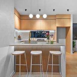 • Open-plan kitchen equipped with premium Bosch appliances, including a gas cooktop.