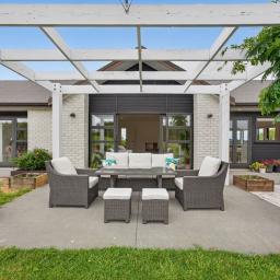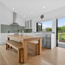 Step inside and feel instantly at home in the light-filled open-plan living and dining area, designed for relaxed family living and effortless entertaining. The indoor outdoor flow connects to a sun soaked patio and gardens, perfect for BBQs, children, and summer evenings with friends. The modern kitchen is both stylish and practical, featuring stone benchtops, quality appliances, and large service cupboard, making it the ideal hub for busy family life.