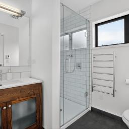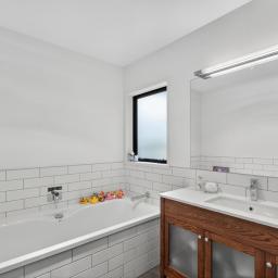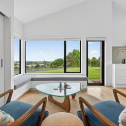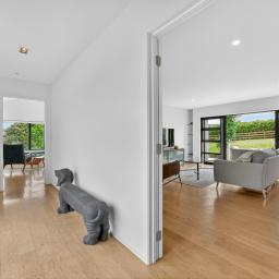 Accommodation includes three generous bedrooms, with the master suite boasting a walk-in wardrobe and ensuite. A sleek family bathroom with contemporary finishes. The bedroom wing offers genuine separation and calm, with all of the bedrooms positioned for privacy.
