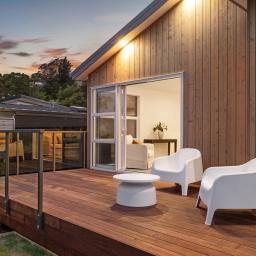 Thoughtfully crafted to deliver a blend of modern design, quality construction and everyday functionality, this standalone home provides a sense of privacy and independence that is seldom found. Inside, the generous open plan living spaces, enhanced by high raked ceilings, are flooded with natural light and designed for effortless indoor outdoor flow, seamlessly extending onto a kwila deck with glass balustrades, ideal for entertaining, dining or simply unwinding in the sun.