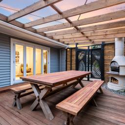 • Wraparound decking and a sheltered courtyard complete with outdoor fireplace - perfect for year-round entertaining