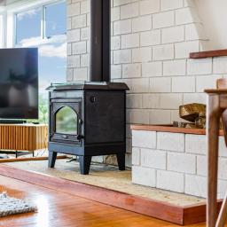 • Comfortable and energy-efficient, with double glazing, HRV system, heat pump, and wood burner