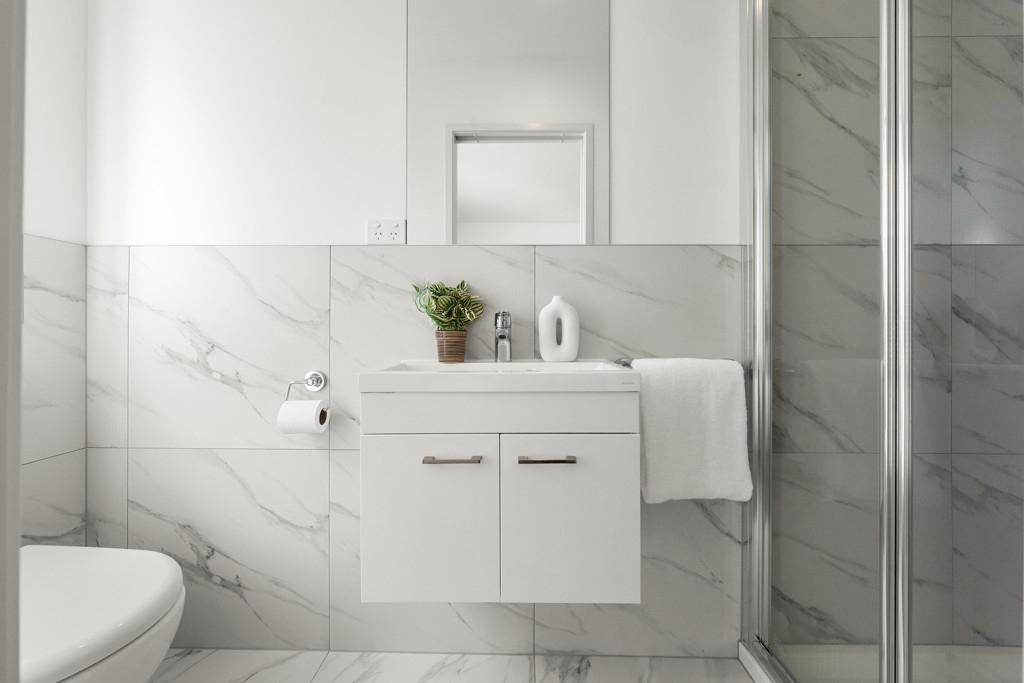 Upstairs, enjoy two well sized bedrooms and two stylish, light filled bathrooms.