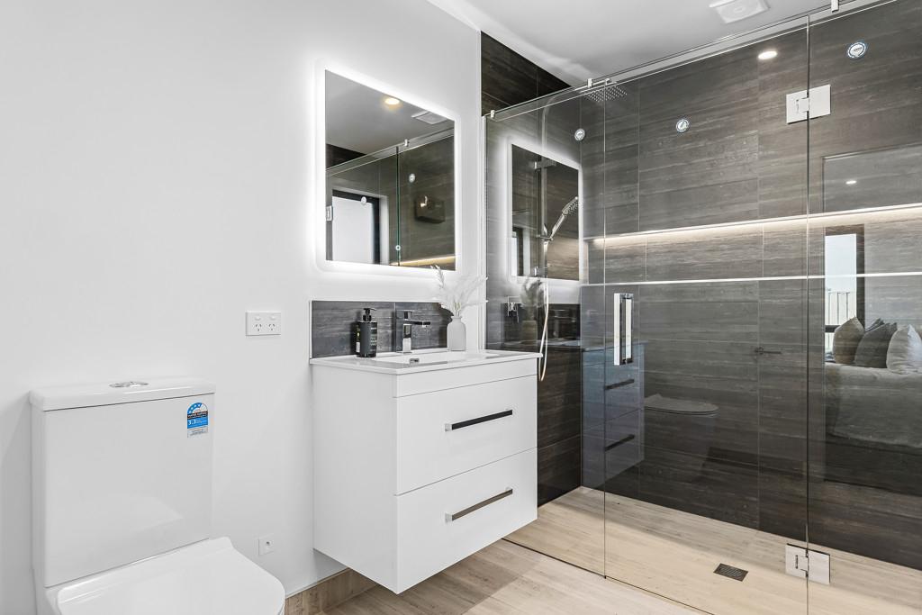 The master suite is a private retreat with a tiled ensuite, walk-in wardrobe and direct patio access. Two further double bedrooms with in-built wardrobes share a family bathroom and separate toilet.