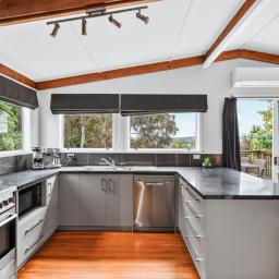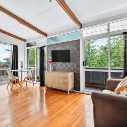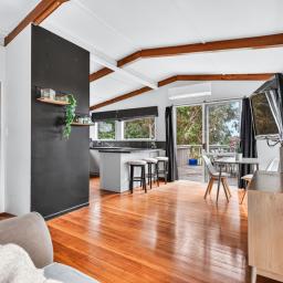 The light-filled kitchen and open-plan living overlook the park, opening through sliding doors to a sun-drenched deck - perfect for morning coffee or summer BBQs.
