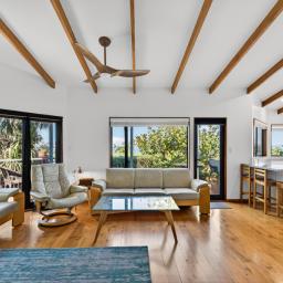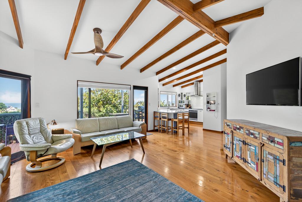 Set high on sought-after Bluff Hill, this modern three-bedroom home blends comfort, style, and sweeping ocean views - an exceptional opportunity that simply must be sold. The open-plan kitchen, dining, and living area flows effortlessly to a sun-drenched deck, perfect for relaxed entertaining or soaking in the ever-changing seascape.