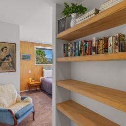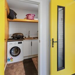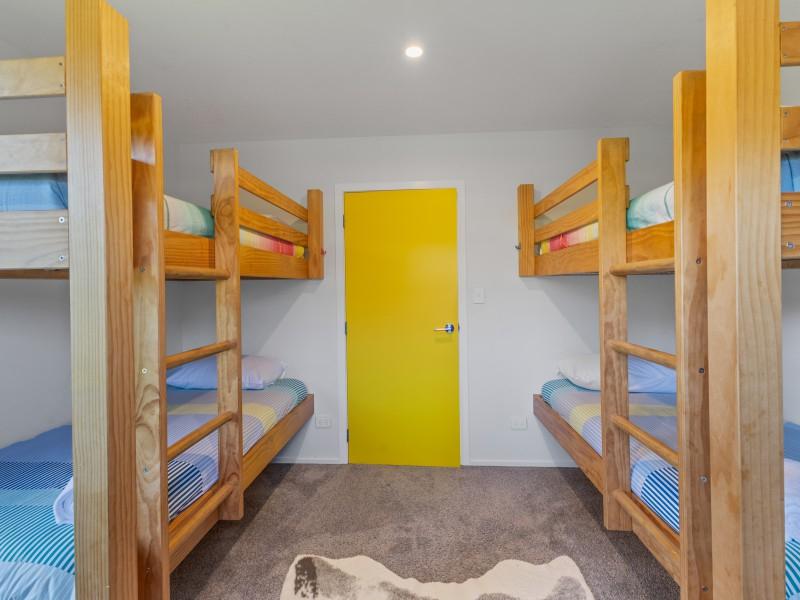 And what is behind the yellow door? There are more yellow doors and a magnificent home on Magnolia Way. What a beautiful property this is. It has three bedrooms, a double, a bunkroom, the master with an ensuite, another bathroom and separate laundry. The master bedroom is spacious with external access on to it's own deck and a lovely wee reading nook as you enter the bedroom.