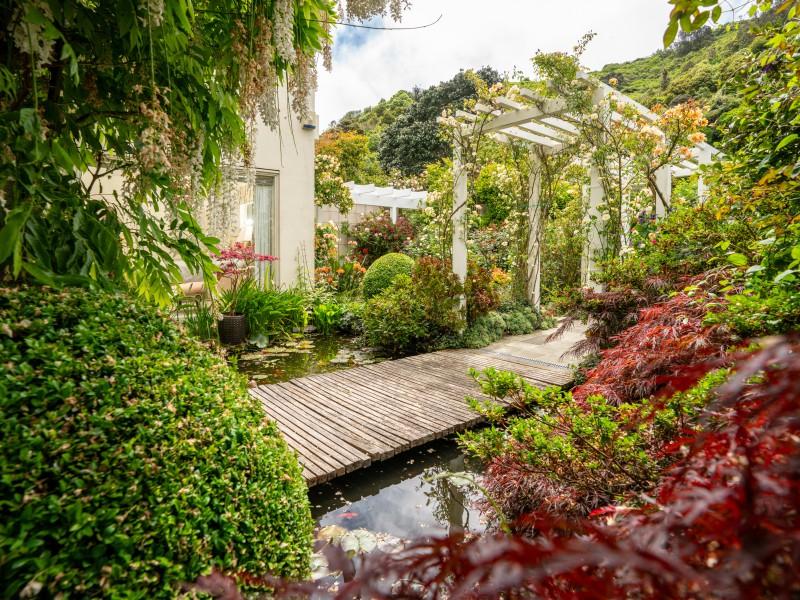 - 1041sqm^ established section: magical scented garden that's a flower arranger's dream, complete with a bridge over a goldfish pond beneath the magnificence of a weeping wisteria: is this Wellington's best-kept secret garden?