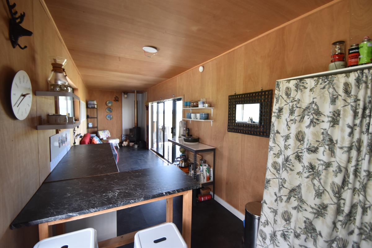 A consented 30m² container sits on-site, fully insulated with a small fire and decks to the front and back, creating practical spots to relax outdoors and enjoy the serenity. It's the perfect base while you visit or work on the property. Outdoor features also include a simple outdoor shower area, rainwater collection tanks, and solar power for off-grid convenience (no mains power to the property).