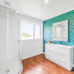 Accommodation includes three bedrooms, supported by two modern bathrooms. The master suite enjoys outdoor access, a walk-in wardrobe and a contemporary ensuite with a tiled shower—simple, sophisticated, and designed to function well for years to come. An internally accessed, carpeted double garage (complete with integrated laundry) reinforces the home’s thoughtful layout.