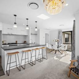 The heart of the home unfolds across large split living areas, creating flexibility for both lively entertaining and quiet retreat. A modern, well-appointed kitchen anchors the main living zone, offering generous walk-in pantry, quality appliances, and seamless flow to dining and family spaces. Year-round comfort is ensured with ducted heating and cooling, complementing the home's warm, contemporary design.