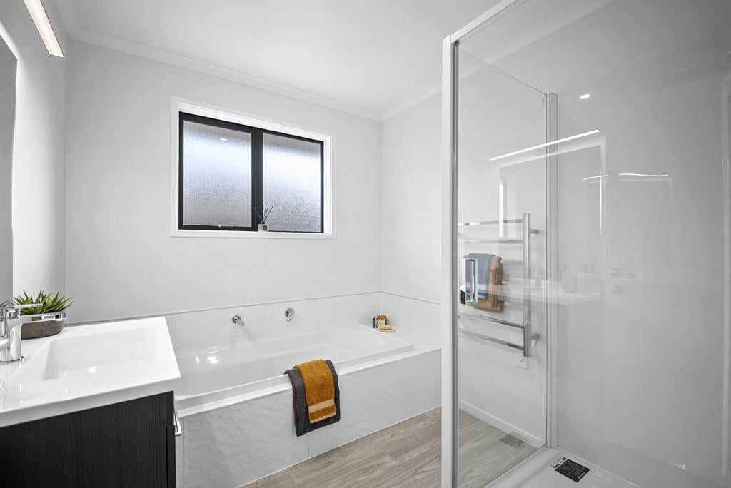 Accommodation includes three well-proportioned double bedrooms and two stylish bathrooms, with the master suite featuring its own private ensuite and walk-in wardrobe. A double internal-access garage provides everyday convenience, enhancing the property's practicality.