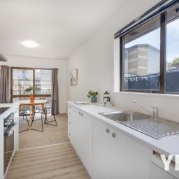Inside you'll find a light and welcoming layout that just makes sense. The open plan living space is bright and flows out onto a wee courtyard area - low maintenance but enough for the perfect outdoor reading spot. The kitchen has been updated, keeping things fresh and functional, while flowing onto your designated dining area.