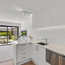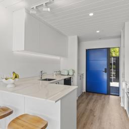 Step inside to open-plan living with a statement benchtop and breakfast bar, flowing out to your north-facing outdoor space. Upstairs you'll find two bedrooms, one double, and one single with a built in hideaway bed that comes with the property offering ideal flexibility for guests and working from home options. Further features include vaulted shiplap ceilings, built-in storage, and a tiled bathroom that feels straight out of a boutique hotel.