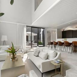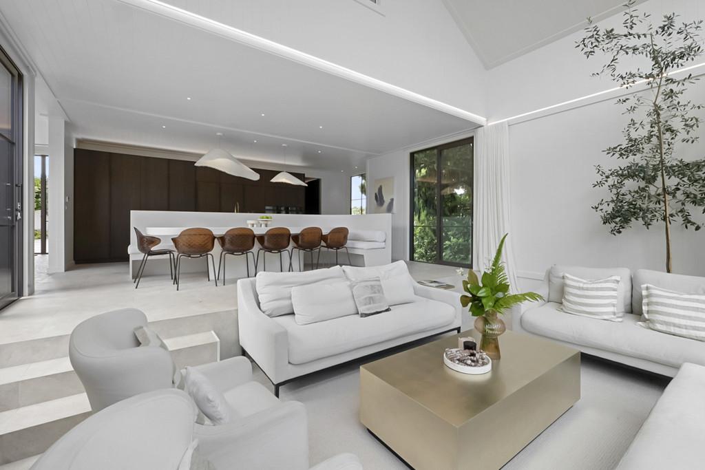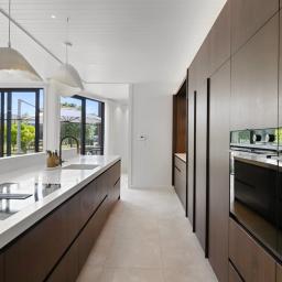 At its heart is a custom Rowson-designed kitchen with Corian benchtops and a beautifully crafted built-in dining booth, perfect for family meals and effortless entertaining. Key features are intentionally doubled to enhance ease and flow - twin sinks, twin ovens, twin dishwashers, separate integrated fridge and freezer units, plus a multi-mode CoolDrawer providing additional chilled, frozen or wine storage.