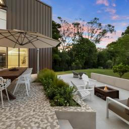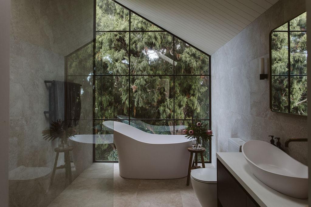 The flexible layout accommodates family life with a ground-floor guest room plus full bathroom, currently used as a kids' lounge, while upstairs offers four additional bedrooms, a family bathroom, and a dedicated office. The primary suite provides bush views, a walk-in dressing room, and a beautifully appointed ensuite with a bath that feels like you are floating in the bush.