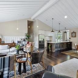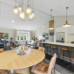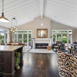 The ground floor is dedicated to relaxed, functional living, with both formal and informal spaces flowing seamlessly to a sun-soaked, private outdoor zone. An outdoor open fireplace sets the tone for year-round entertaining and relaxed evenings with family and friends. The kitchen showcases oak timber, marble benchtops, and a generous scullery, catering beautifully to home cooks and entertainers alike.