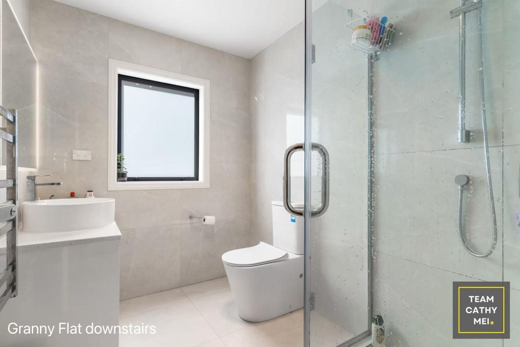 • Granny Flat downstairs: 2 bedrooms, 1 bathroom and a living space with a kitchenette bench. Separate entrance with courtyard space.