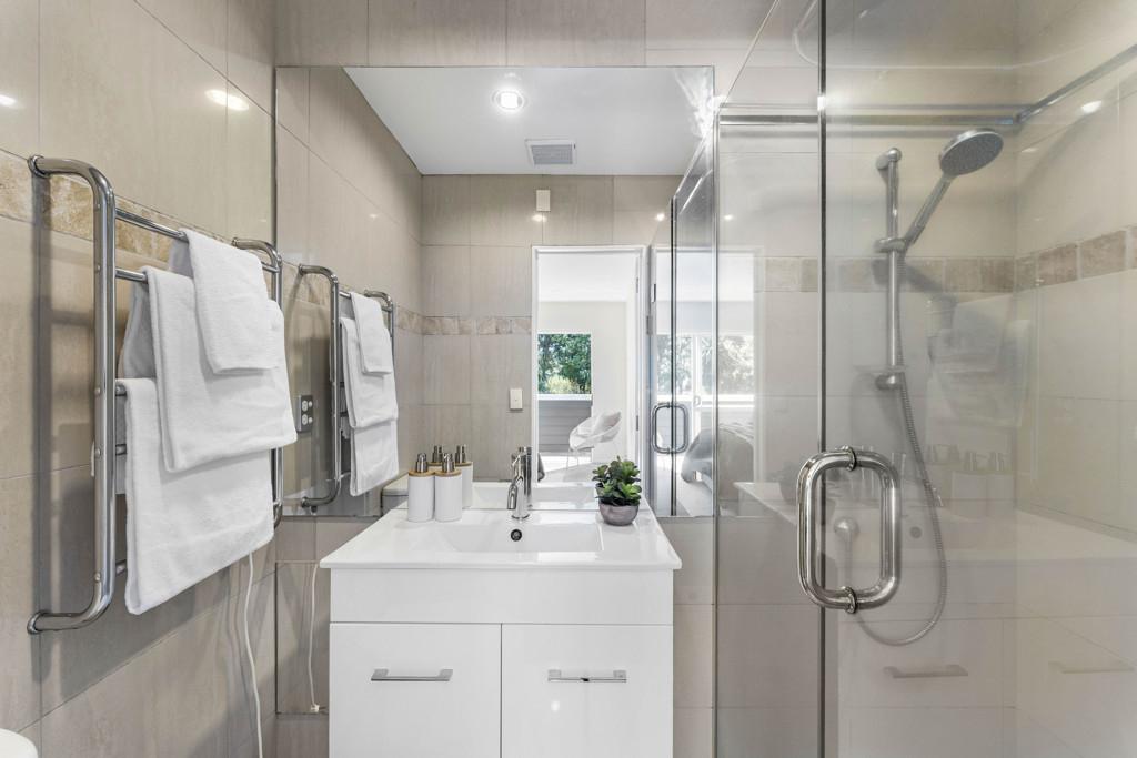 Set across three well-designed levels, this 200sqm home is ideal for families, flatmates or those needing separation of space. The lower level features two bedrooms supported by a family bathroom plus generous dry storage-perfect for bikes, boards and weekend adventure gear. The mid-level offers two further double bedrooms, each with its own ensuite.