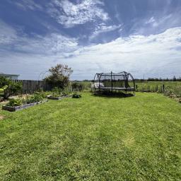 Down the passage are three bedrooms, two will fit a queen size bed and one a single. There is a combined shower, toilet and handbasin area. The laundry is in the large single garage, parking at the side and front of the house. Situated on a rectangular 809 sqm section, with farmland at the rear, and lots of garden space for you to enjoy!