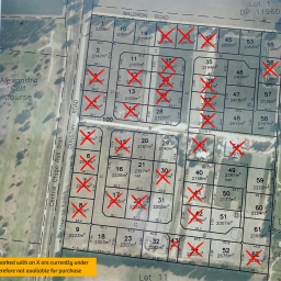 Lots 3,4,5,6,7,8 11, 12, 14, 15 17, 22, 24, 25, 27, 30, 33, 34, 39, 41, 42 44, 54, 62 identified as unavailable in the image are under contract with the developer, Molynuex Lifestyle Village Limited, and are therefore unavailable.