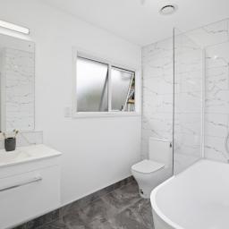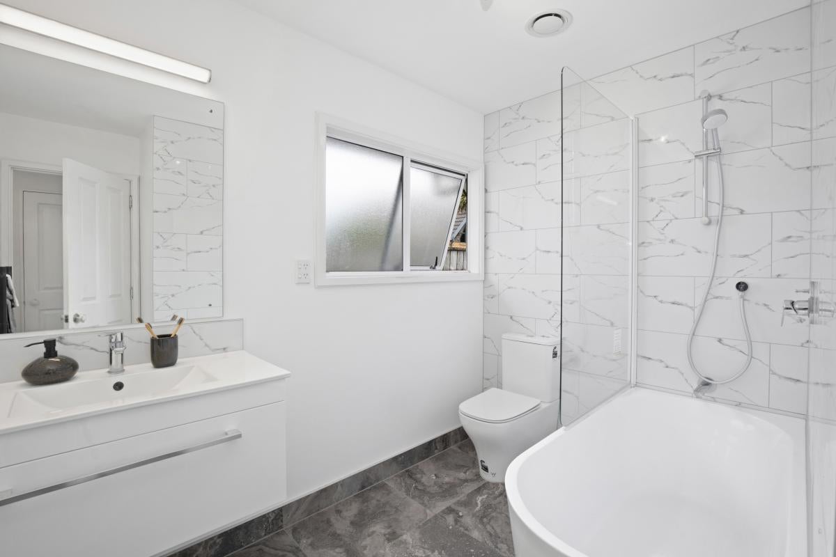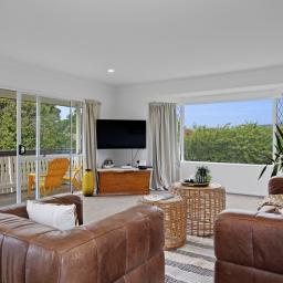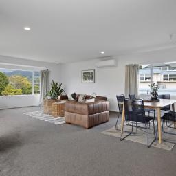 The ground floor provides two bedrooms, a bathroom, a comfortable lounge area and a laundry space, creating an ideal retreat for teenagers to relax or focus on their studies. Upstairs, the open-plan living, dining, and kitchen area seamlessly flows onto a sunny deck, perfect for entertaining or unwinding. Down the hallway, you'll find the main bathroom and an additional bedroom, ensuring privacy and convenience for all.